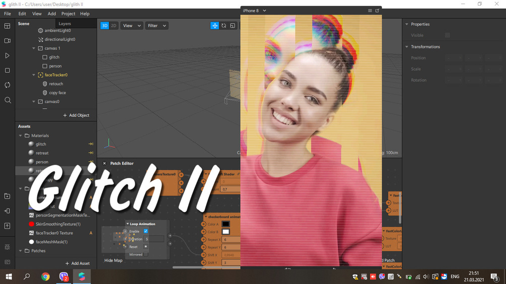 Spark AR top GLITCH effects with LUT + noise + slider intensity + retouch